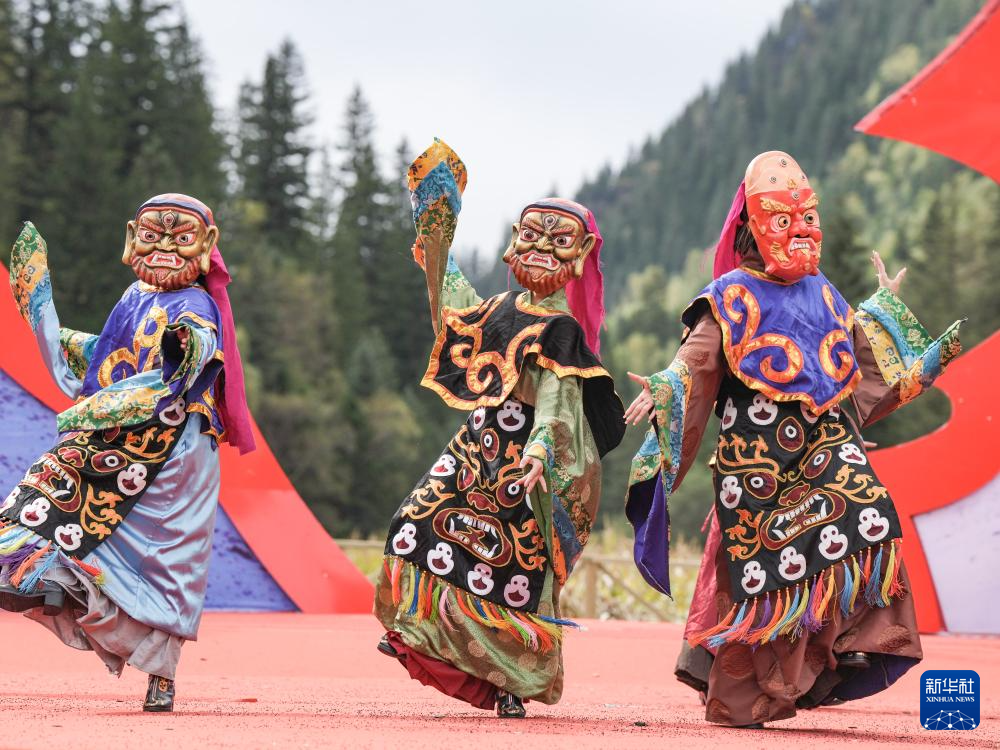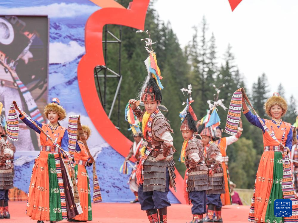 10月18日,在四川省阿坝州黑水县卡龙镇才盖村,演员在开幕式上表演国家级非遗项目“卡斯达温舞”。
