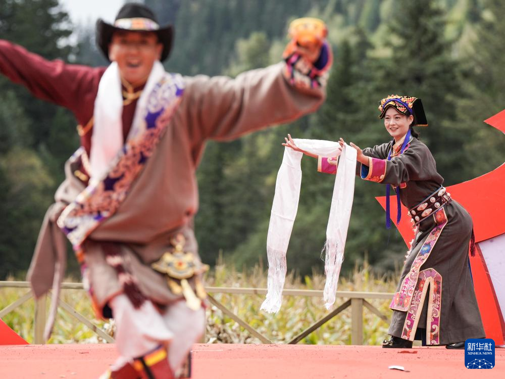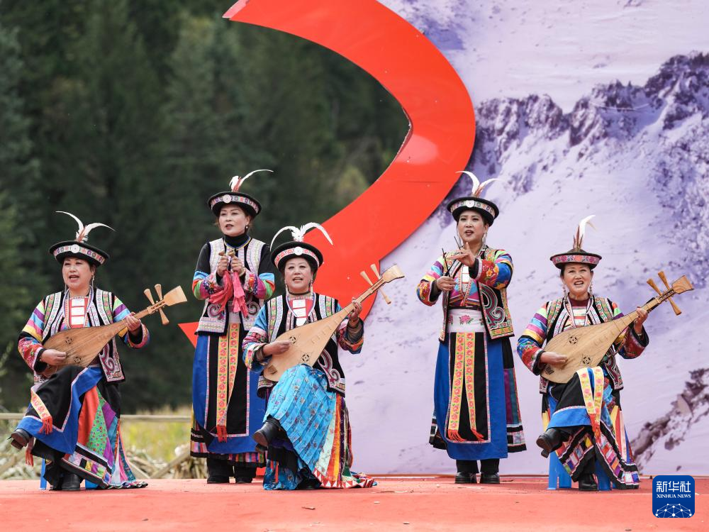 10月18日,在四川省阿坝州黑水县卡龙镇才盖村,演员在开幕式上表演国家级非遗项目“南坪曲子”。